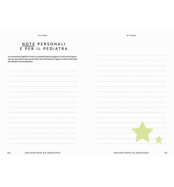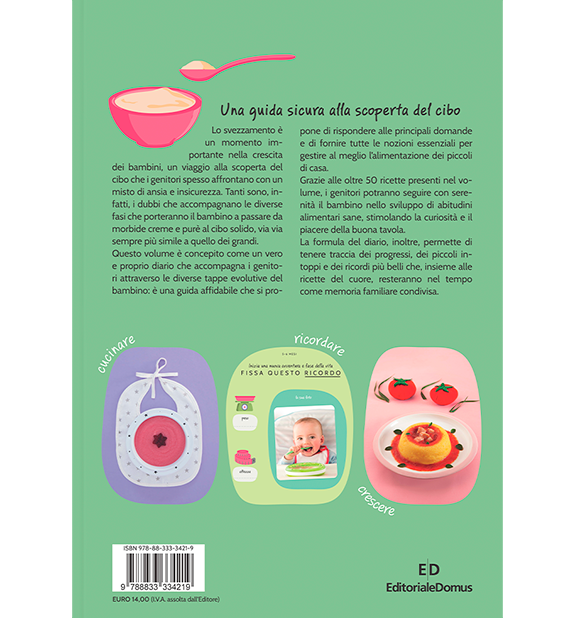 Il Diario dello svezzamento è concepito come un vero e proprio diario che accompagna i genitori attraverso le diverse tappe evolutive del bambino: è una guida affidabile che si propone di rispondere alle principali domande e di fornire tutte le nozioni essenziali per gestire al meglio l’alimentazione dei piccoli di casa. Grazie alle oltre 50 ricette presenti nel volume, i genitori potranno seguire con serenità il bambino nello sviluppo di abitudini alimentari sane, stimolando la curiosità e il piacere della buona tavola. La formula del diario, inoltre, permette di tenere traccia dei progressi, dei piccoli intoppi e dei ricordi più belli che, insieme alle ricette del cuore, resteranno nel tempo come memoria familiare condivisa.