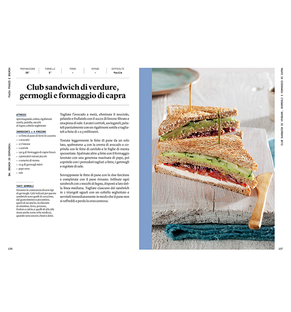 Pausa Pranzo e Brunch è un volume della collana «Per volersi bene» e contiene tante idee per pranzi sprint, equilibrati e gustosi, da realizzare quando si è a casa, magari in smartworking, ma anche da portare in ufficio o a una gita fuoriporta. E per le domeniche conviviali, il brunch saprà creare un momento gourmet, tra piatti dolci e salati.