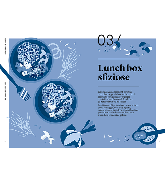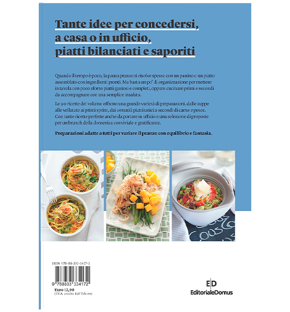 Pausa Pranzo e Brunch è un volume della collana «Per volersi bene» e contiene tante idee per pranzi sprint, equilibrati e gustosi, da realizzare quando si è a casa, magari in smartworking, ma anche da portare in ufficio o a una gita fuoriporta. E per le domeniche conviviali, il brunch saprà creare un momento gourmet, tra piatti dolci e salati.